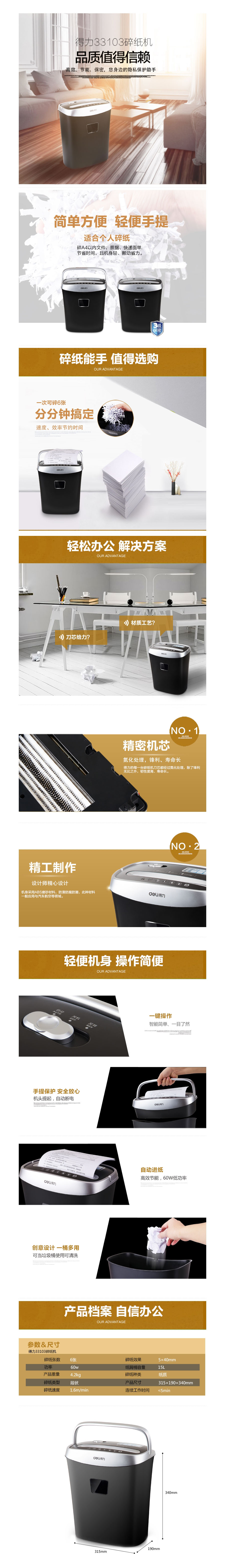 品名:得力(deli) 碎纸机 33103 315×190×340mm