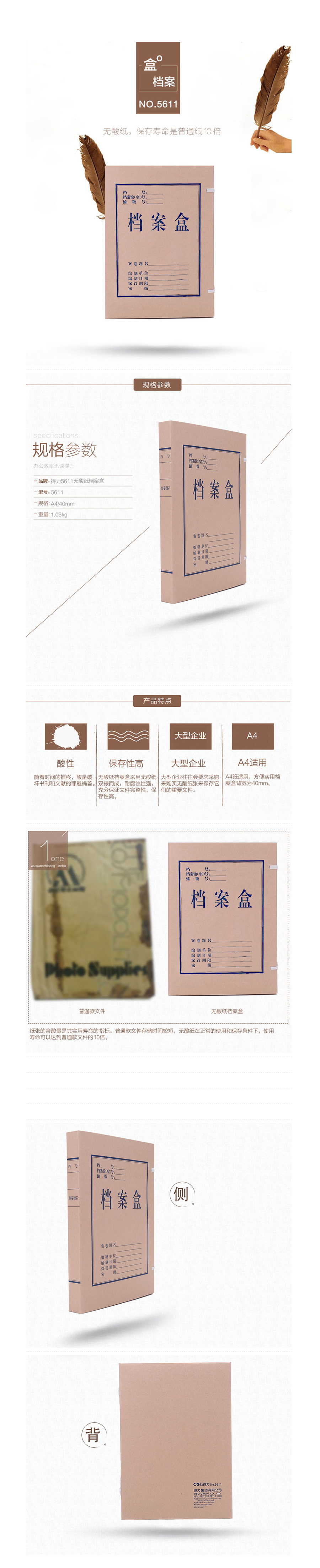 品名:得力(deli) 档案盒 5611 A4 40mm 无酸纸