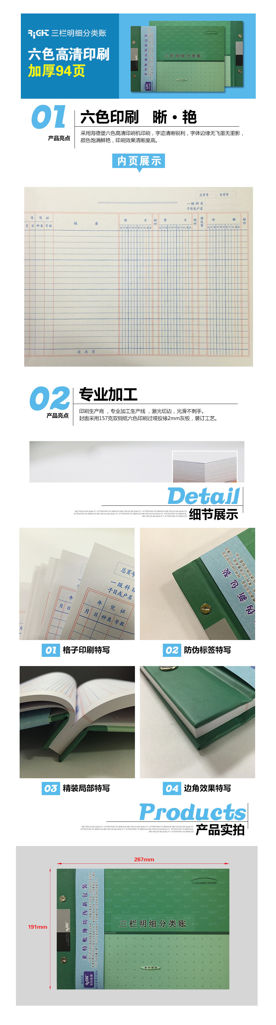 品名:莱特 三栏明细分类账 6106 267×191mm 96页