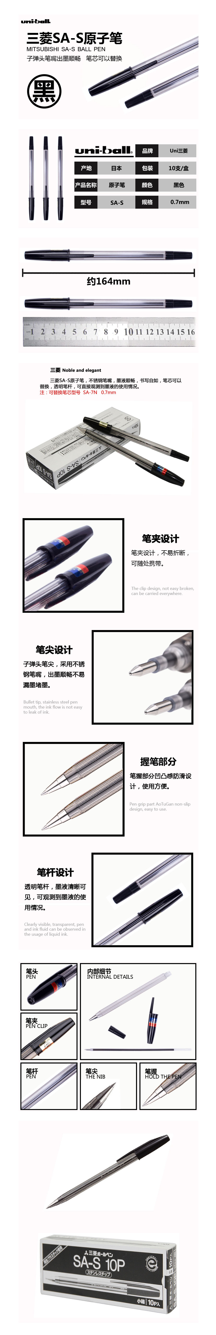 品名:三菱(Uni) 圆珠笔 SA-S 0.7mm 黑色 10支装