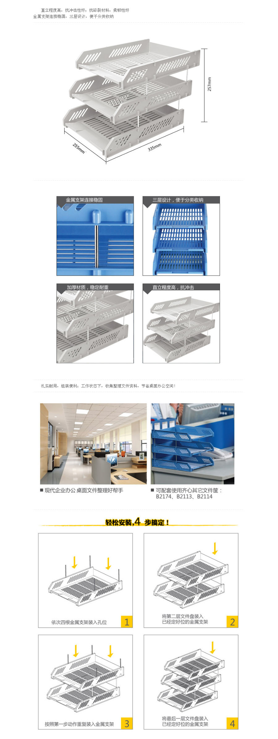 品名:齐心(COMIX) 文件盘 B2060 稳固型 三层 灰色