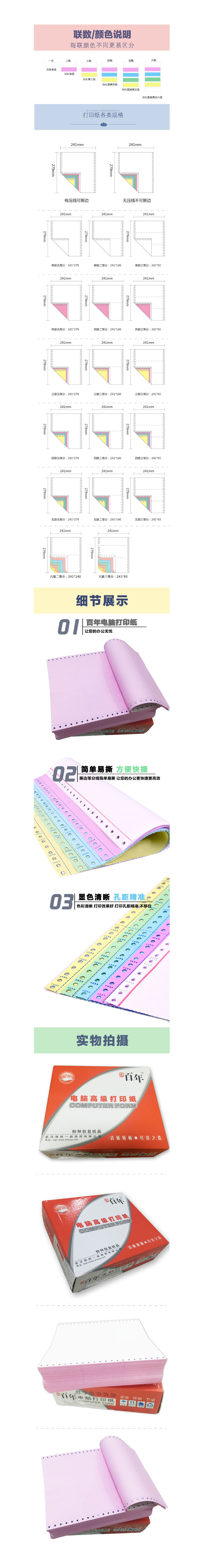 品名:百年 电脑打印纸 241 五联两等分 1000张/包