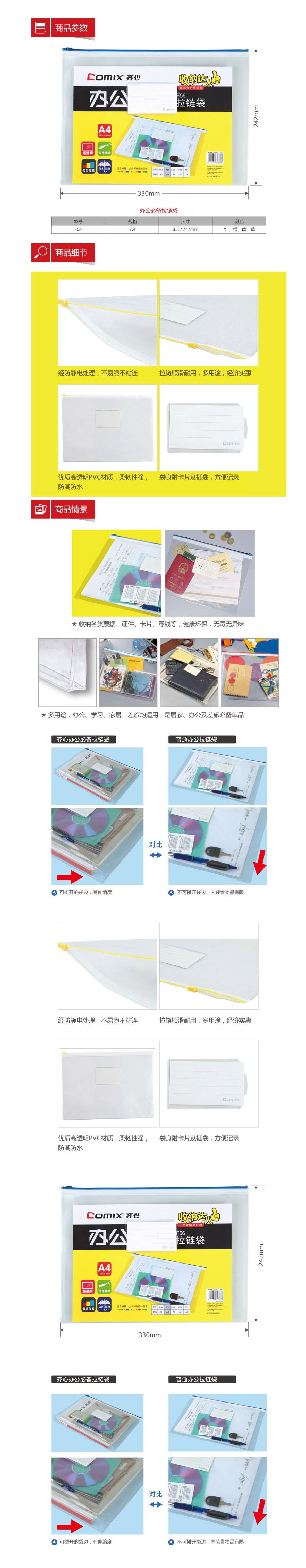 品名:齐心 Comix 拉链式PVC透明袋 F56 A4 235x303mm A4,11孔
