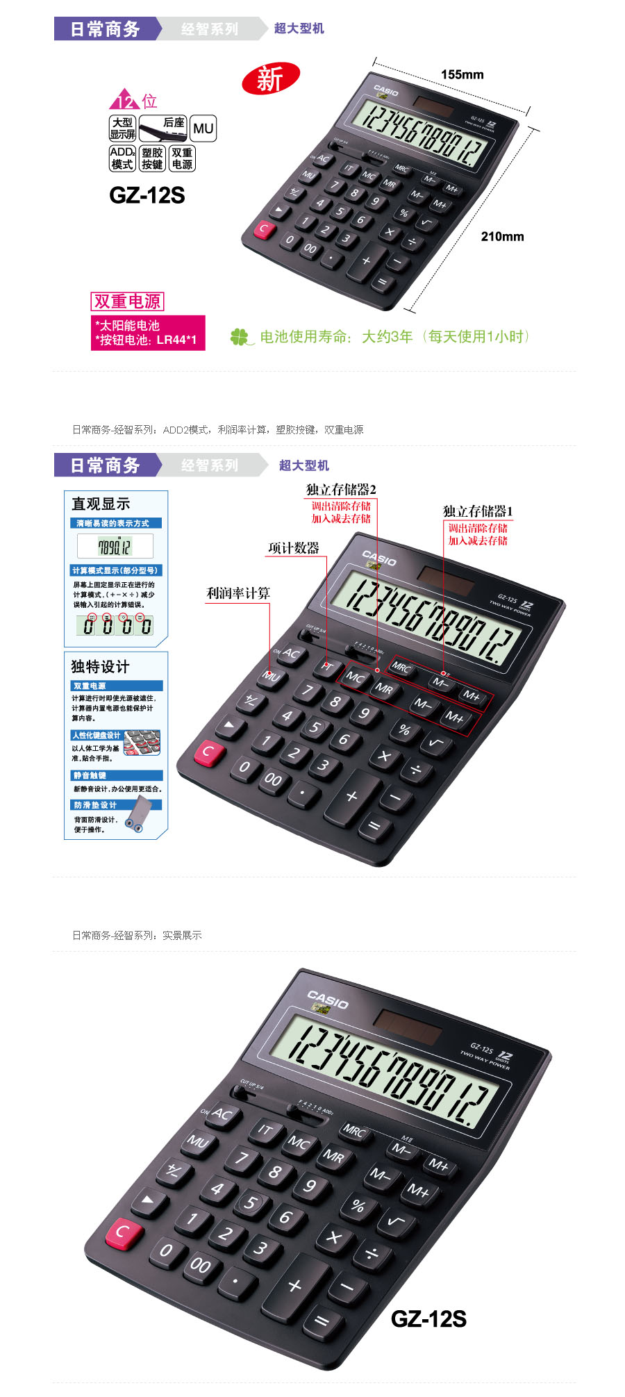 品名:卡西欧(CASIO) 计算器 GZ-12S 黑色