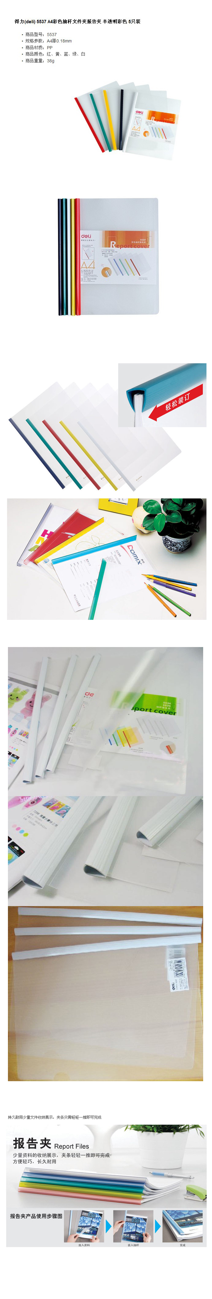 品名:得力(deli) 实色抽杆报告夹(混合) 5537 A4 6mm 5个装