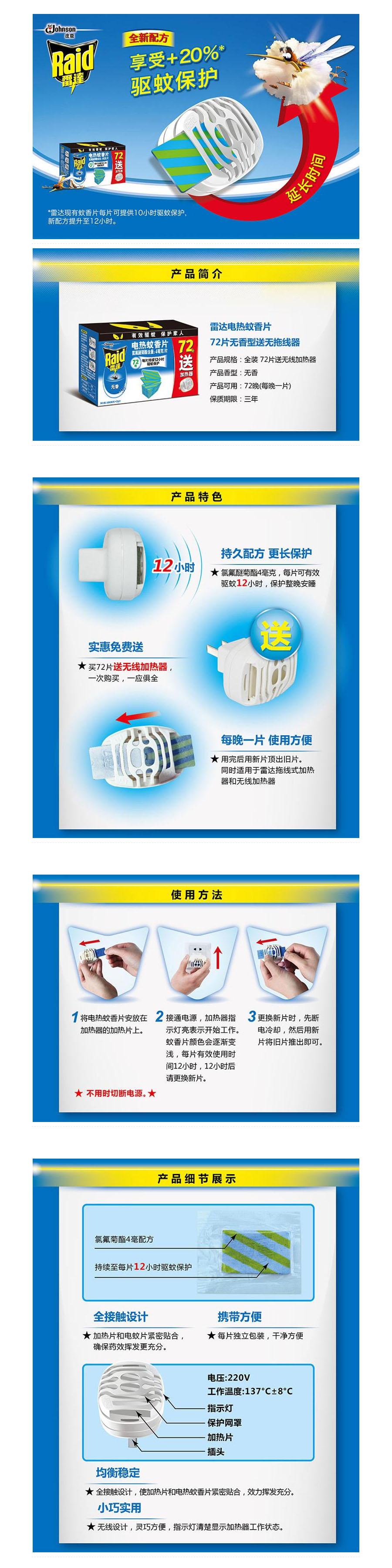 雷达 蚊香片 72片 无香型 送无拖线器
