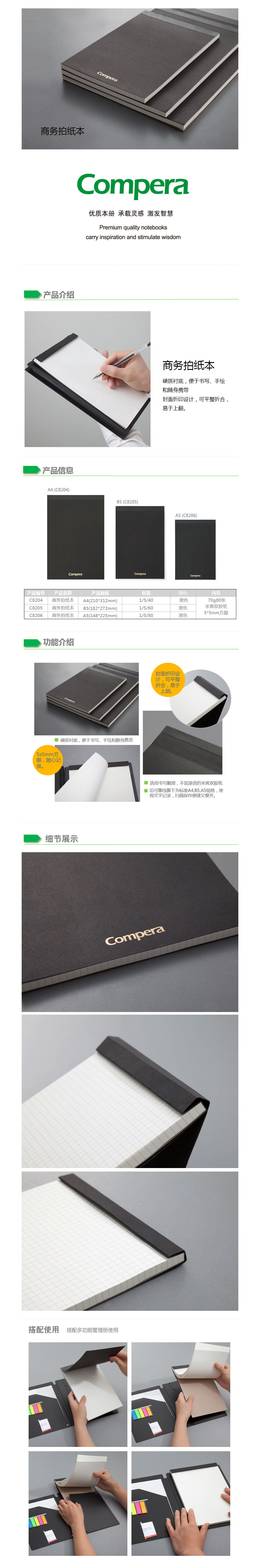 齐心(COMIX) 拍纸本 C8204 A4 80张 黑色