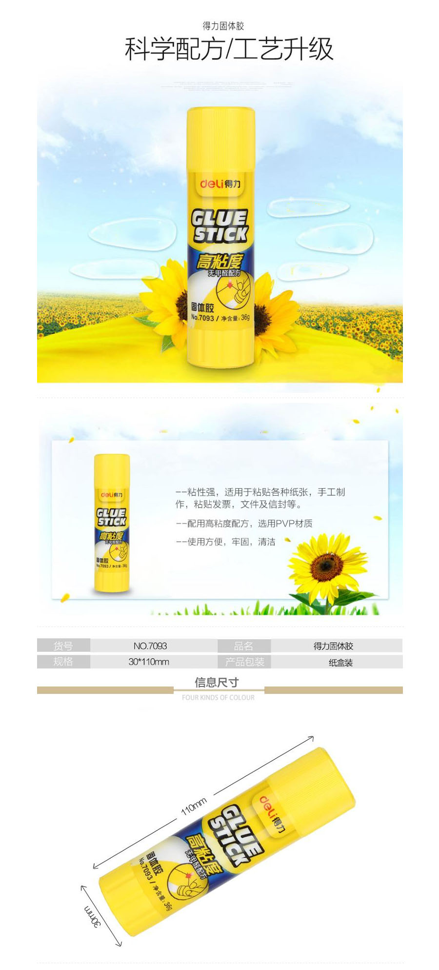品名:得力(deli) 强粘性PVP固体胶棒 7093 效果更持久36g 单支装