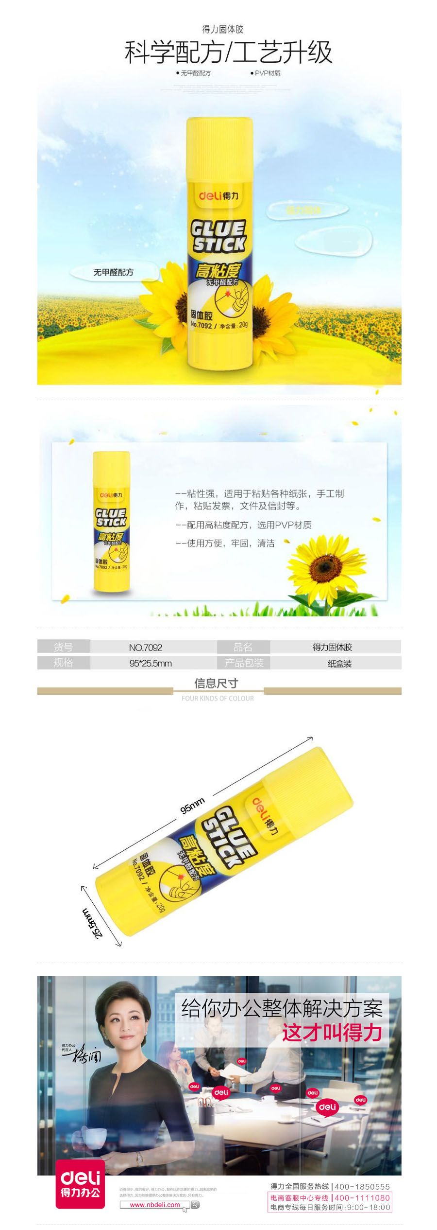 品名:得力(deli) 强粘性PVP固体胶棒 7092 20g 单支装