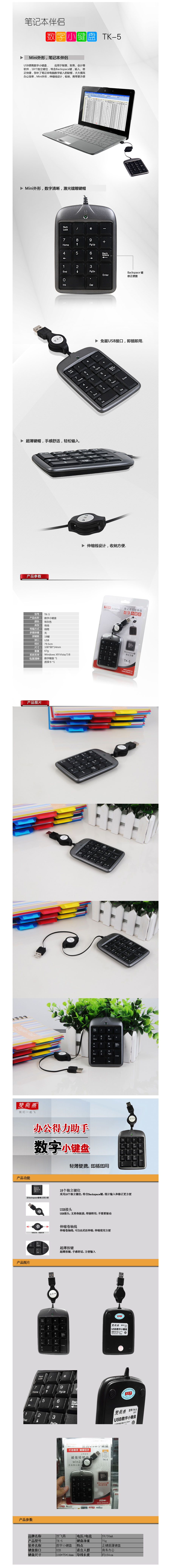 品名:双飞燕 笔记本数字小键盘 TK-5 免切换USB伸缩线