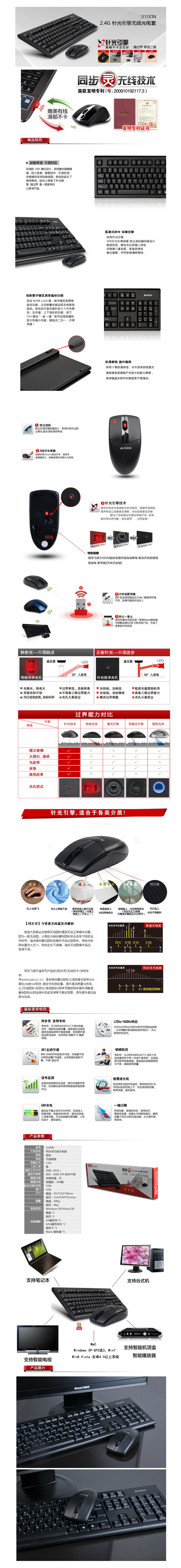 双飞燕 无线键鼠套装 3100N