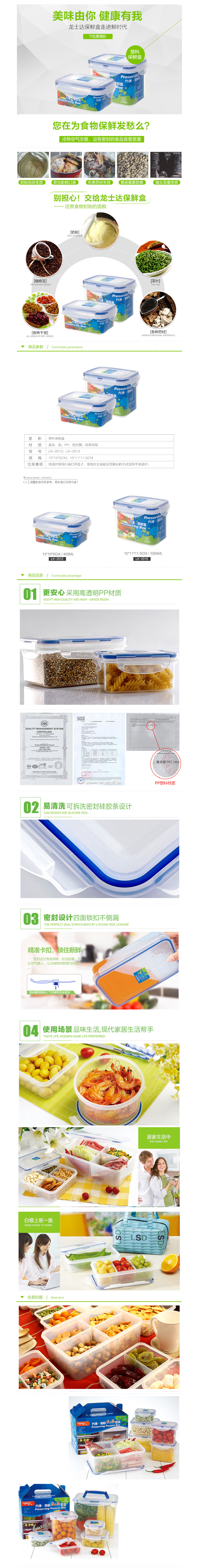 品名:龙士达(LONGSTAR) 保鲜盒 LK-2012 400ml 透明塑料密封