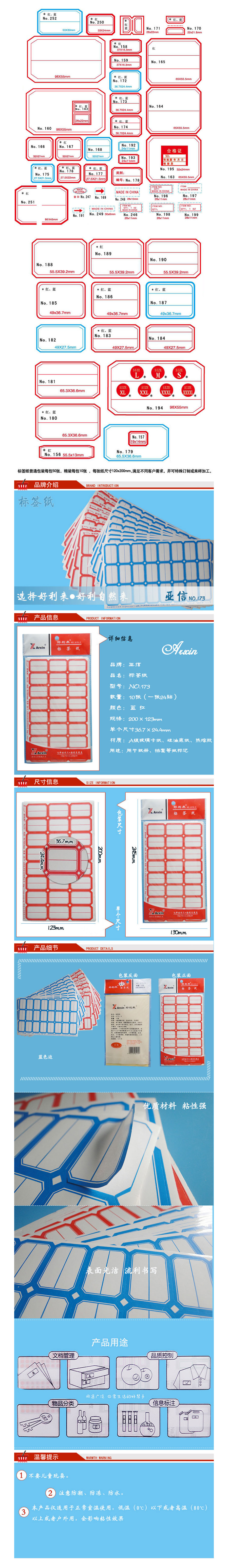 品名:亚信 好利来 不干胶贴纸 NO.173 10张/包 36.7*24.4mm 红