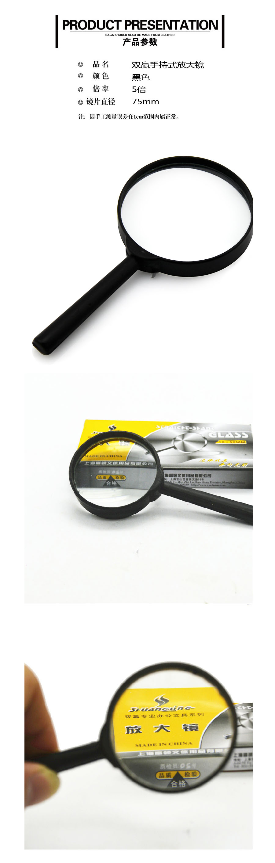 品名:双赢 手持式高倍数高清玻璃放大镜 6*75mm 办公阅读用品