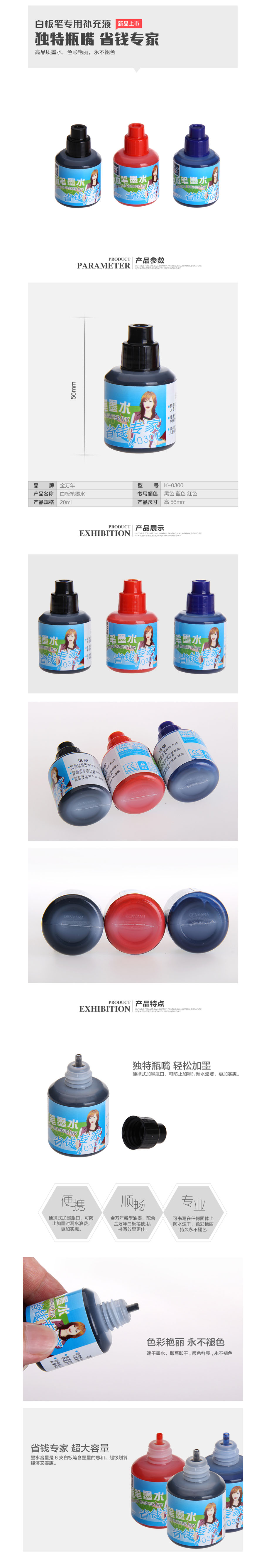 品名:金万年(Genvana) 白板笔专用墨水 K-0300 20ml 黑色 单支装