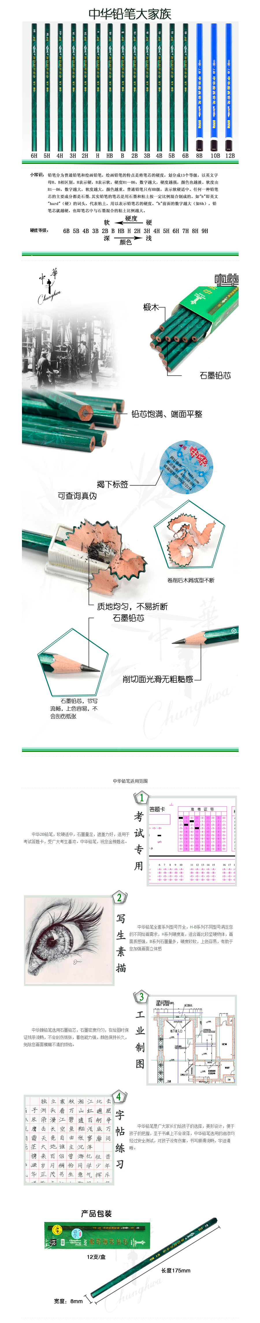 品名:中华 2B 绘图铅笔 101 12支/盒
