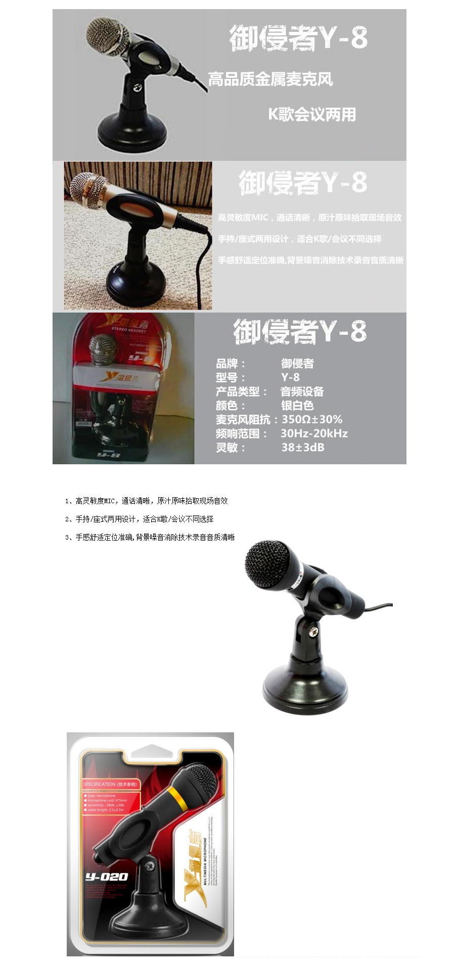品名:御侵者 专业加重麦克风 Y8 可k歌聊天录音