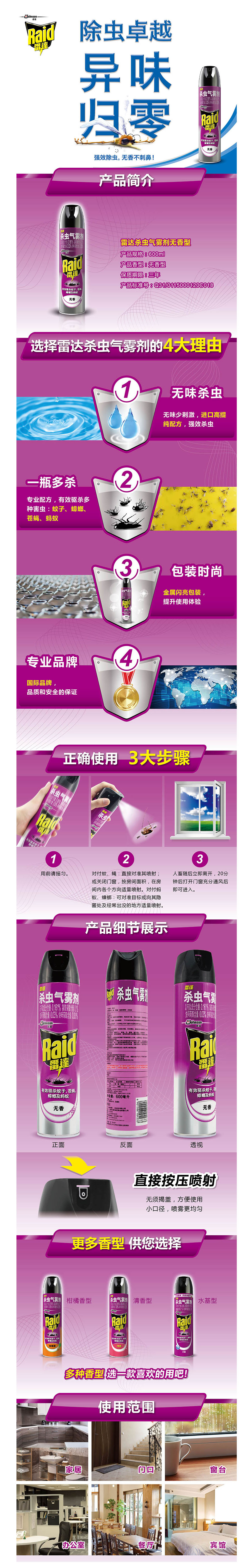 品名:雷达 杀虫气雾剂 杀虫剂 无香型 喷罐杀蝇 蚊蟑 600ml/瓶