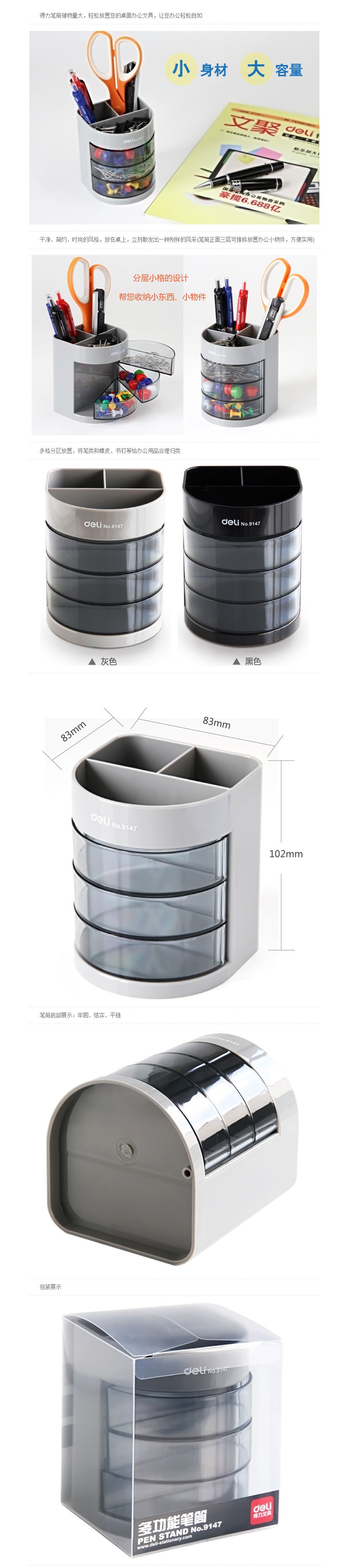品名:得力(deli) 三层多功能办公笔筒 9147 多色随机发