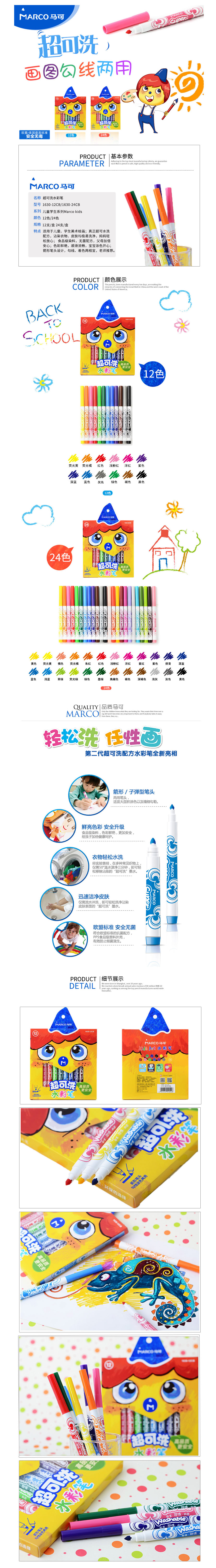 品名:马可(MARCO) 绘画水彩笔 1630 12色 可水洗无毒