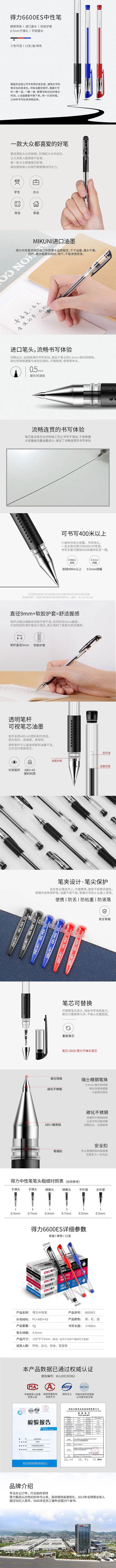 品名:得力(deli) 中性笔 6600ES 0.5mm 12支/盒 黑色
