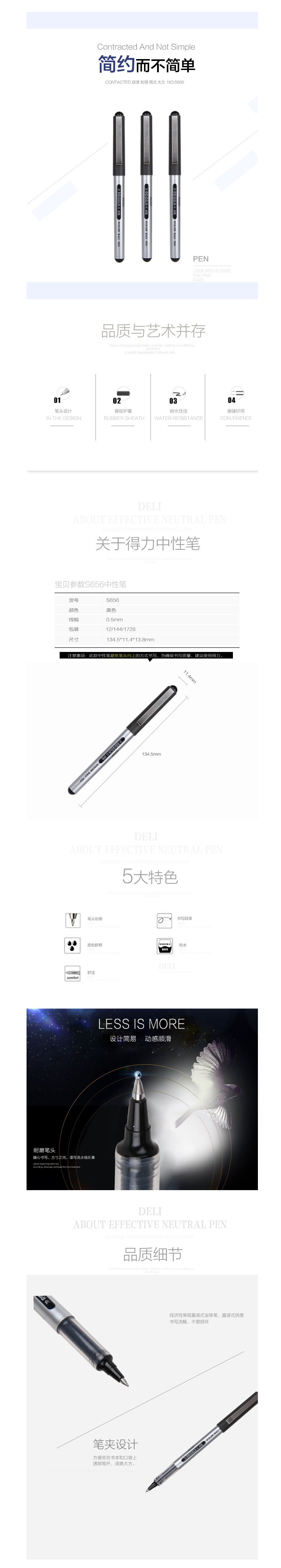 品名:得力(deli) 中性笔 S656 直液式 0.5mm 黑 12支/盒