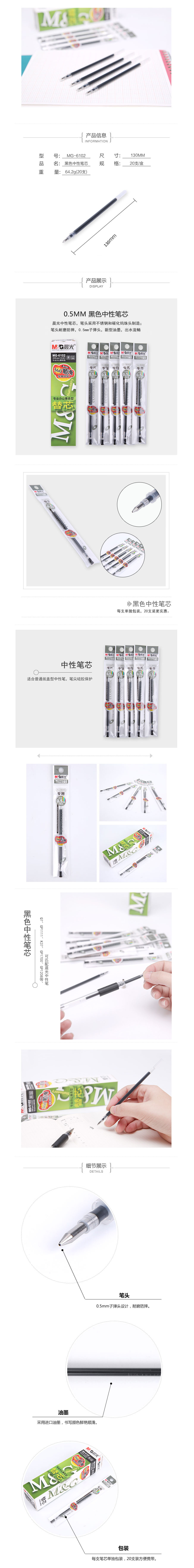 品名:晨光(M&G) 中性笔替芯 MG-6102 0.5mm 20支装 黑色