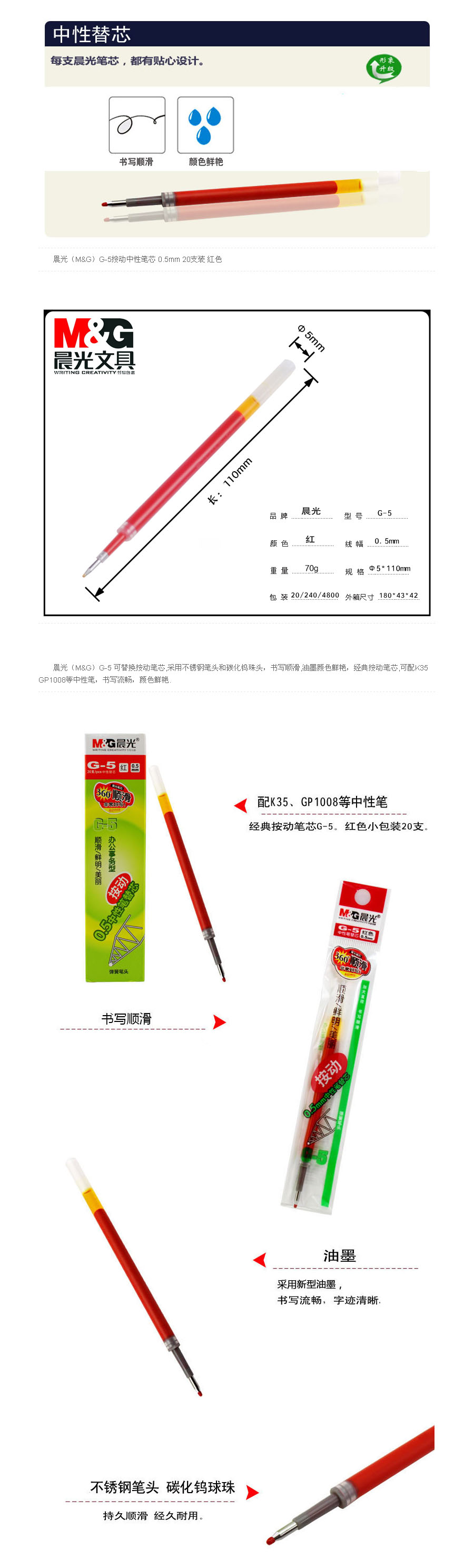 品名:晨光(M&G) 中性笔替芯 G-5 0.5mm 20支装 红色