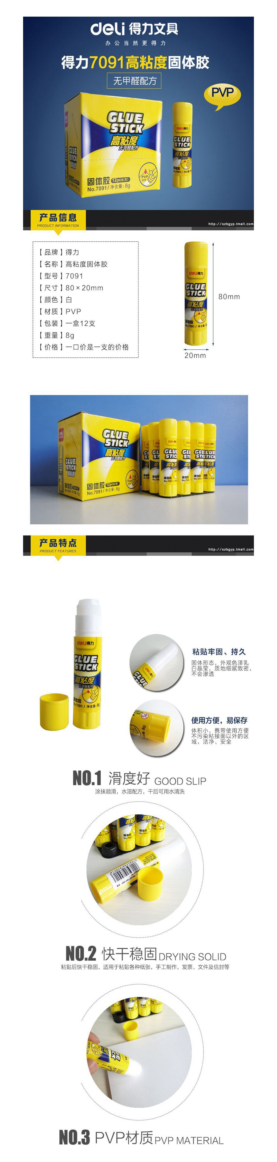 品名:得力 固体胶 7091 8g 强粘性 PVP