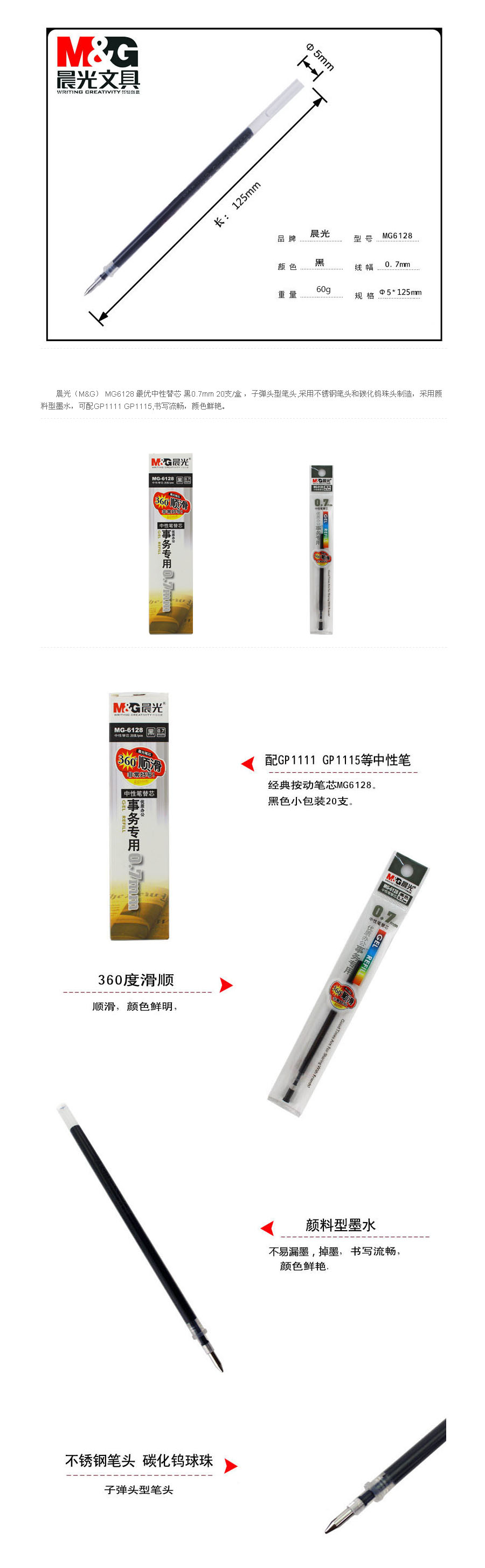品名:晨光(M&G) 中性笔芯 MG-6128 0.7mm 20支装 蓝色