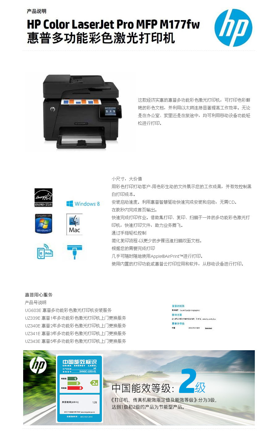 品名:惠普(HP) 彩色激光一体机 Pro MFP M177fw 打印 复印 扫描 传真