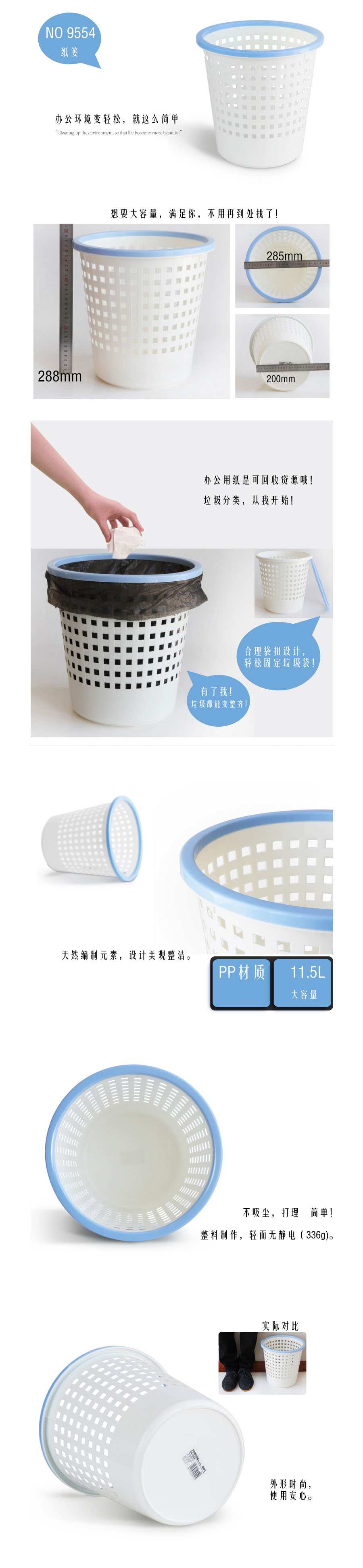 品名:得力(deli) 垃圾桶 9554 撞色 中号 蓝色压圈
