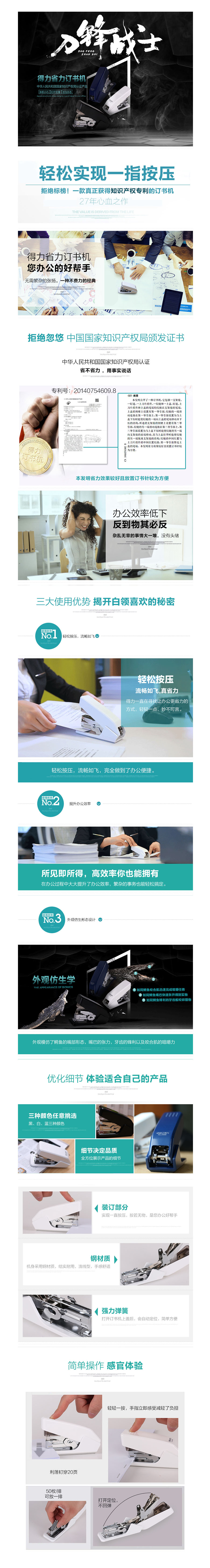 品名:得力(deli) 订书机 0466 搭配12#钉 可装50枚钉书针 蓝色