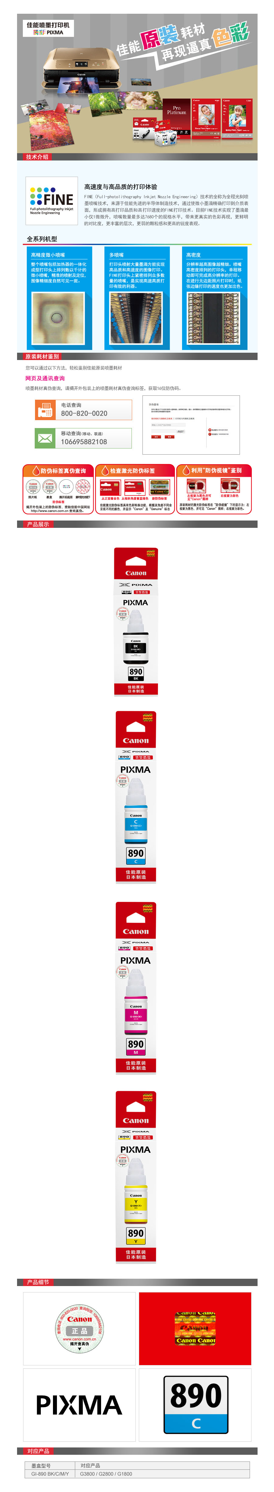 品名:佳能(Canon) 墨水 GI-890 C (适用佳能加墨式墨仓打印机G1800 G2800 G3800)...