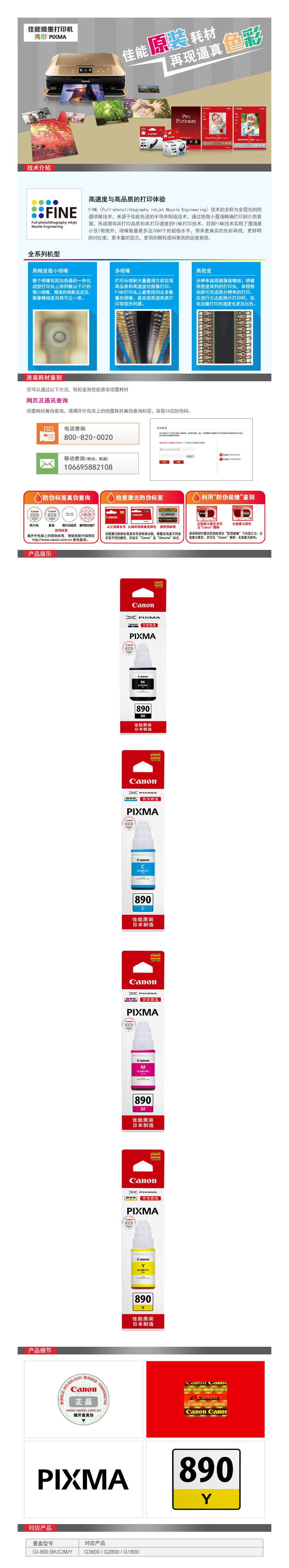 品名:佳能(Canon) 墨水 GI-890 Y (适用佳能加墨式墨仓打印机G1800 G2800 G3800)...