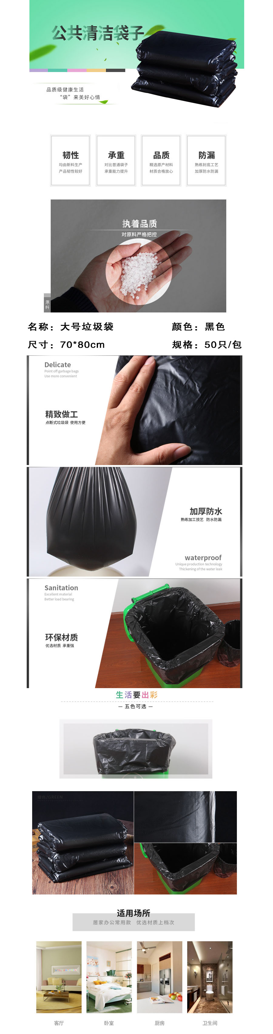 品名:垃圾袋 大号 70*80 50只/包 黑色