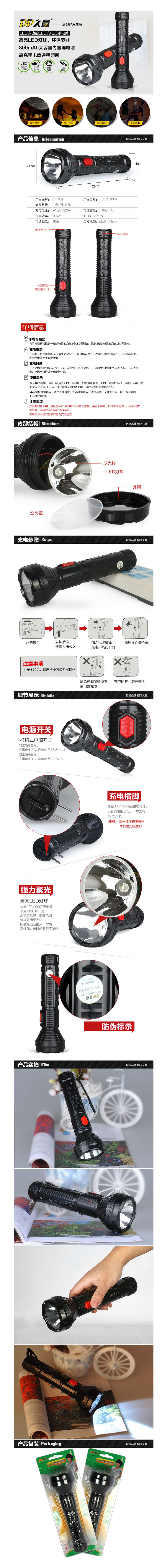 品名:久量(DP) 手电筒 LED-9002 2档 800毫安 0.8W 黑色