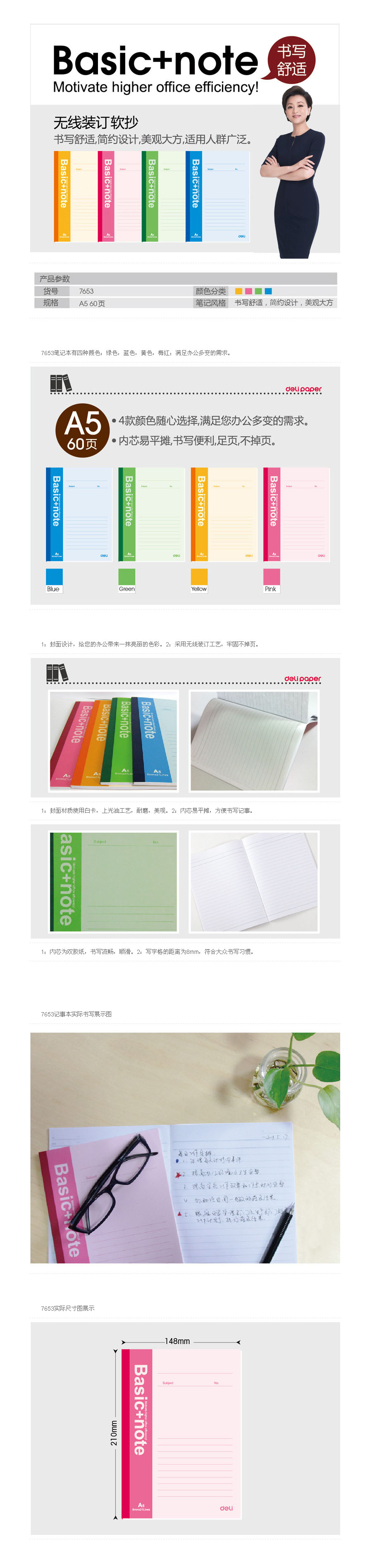 品名:得力(deli) 软抄本 7653 A5 60页 10本装