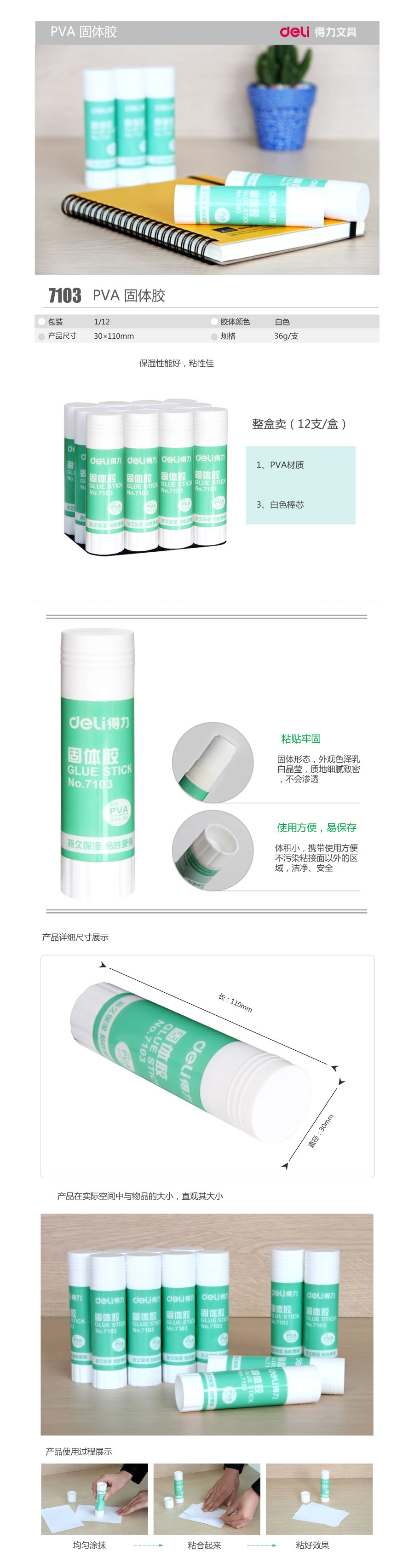 品名:得力(deli) 固体胶 7103 36g 12支/盒