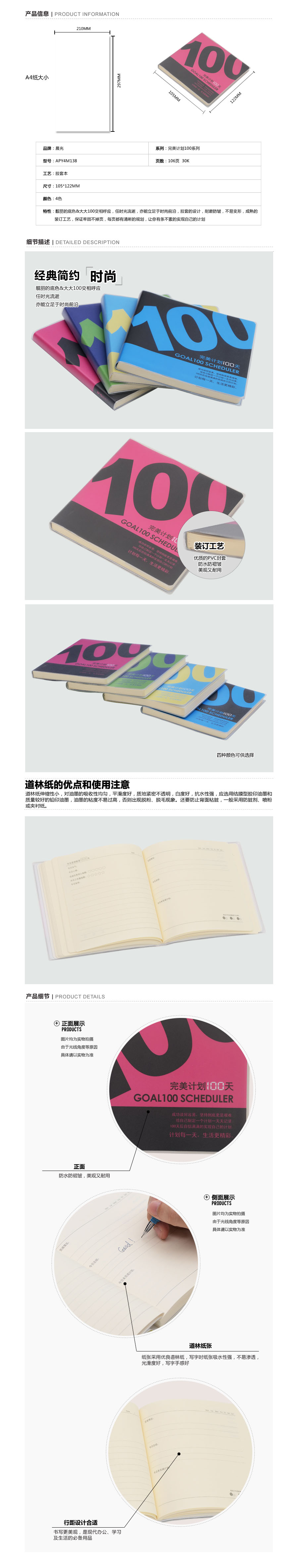 品名:晨光(M&G) 胶套本 APY4M138 完美计划100天 106页 30K 颜色随机