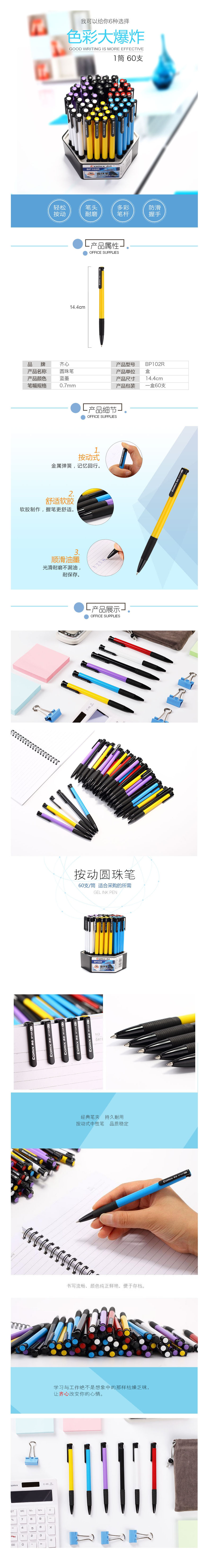 品名:齐心(Comix) 圆珠笔 BP102R 防滑握手圆珠笔0.7mm 60支装