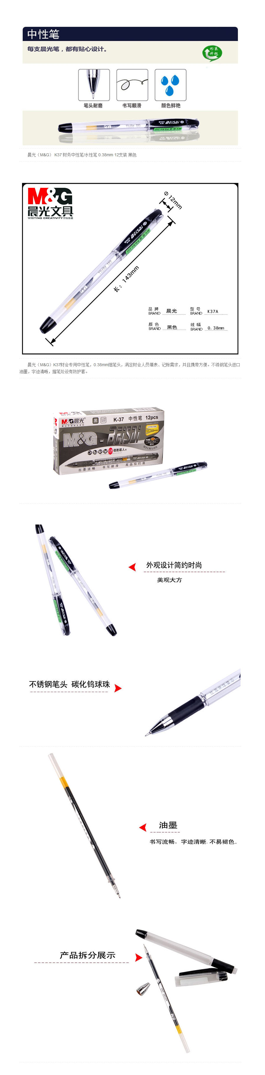 品名:晨光(M&G) 中性笔 K37 0.38mm12支装 黑色