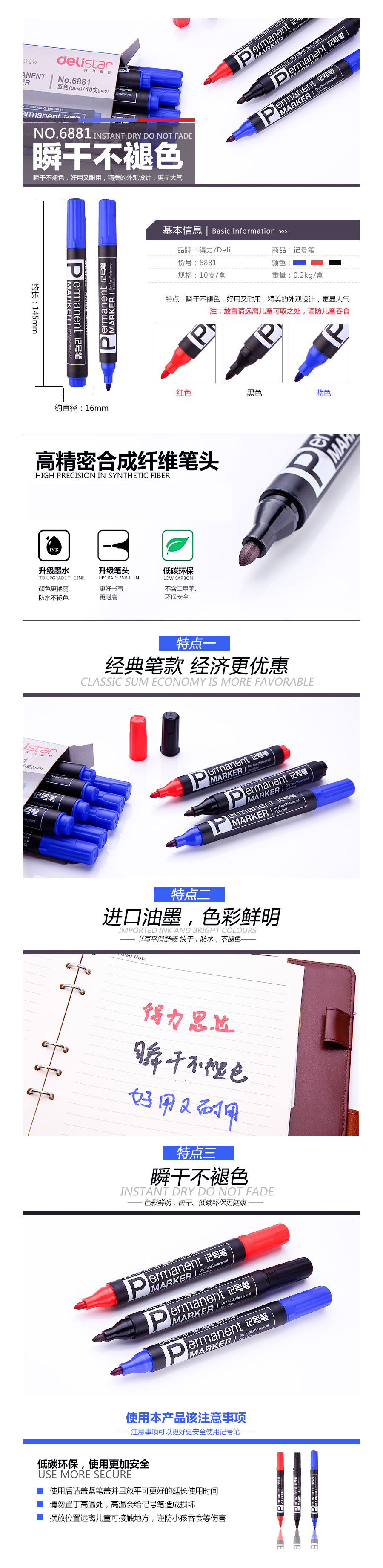 品名:得力(deli) 记号笔 6881 单头 10支/盒 黑色
