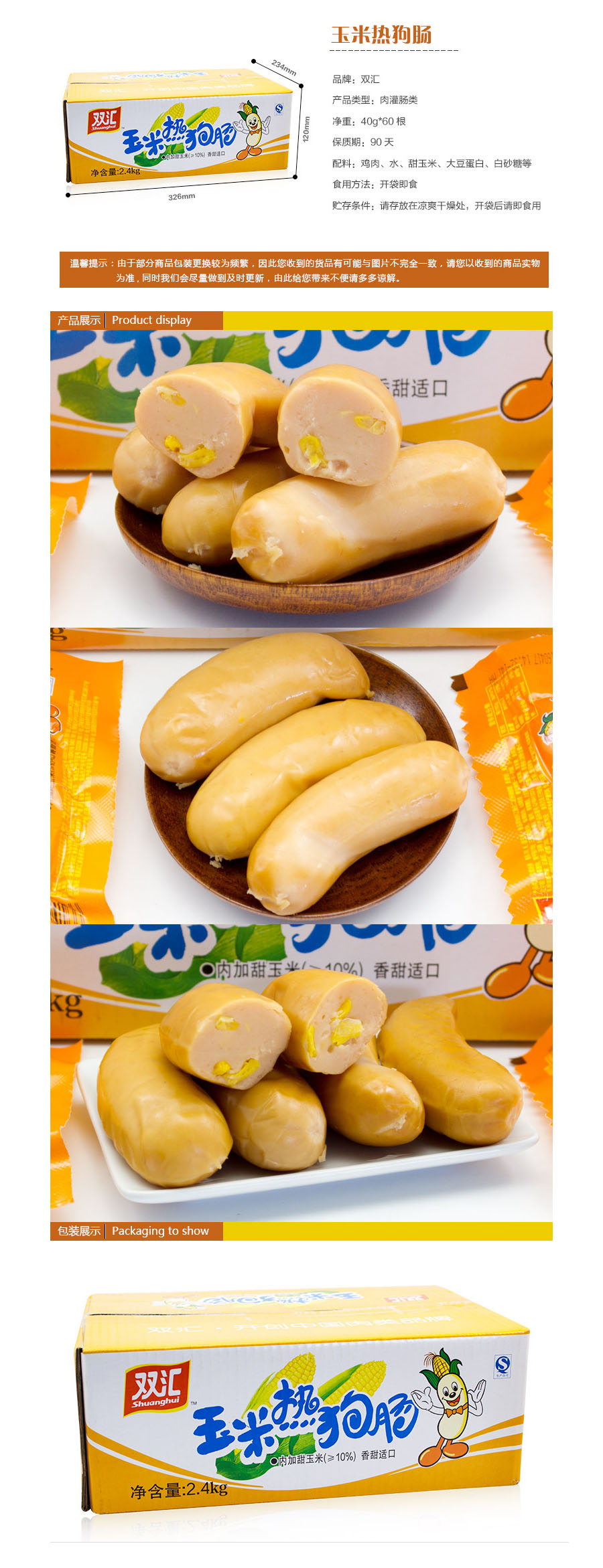 品名:双汇 玉米肠 40g*60支