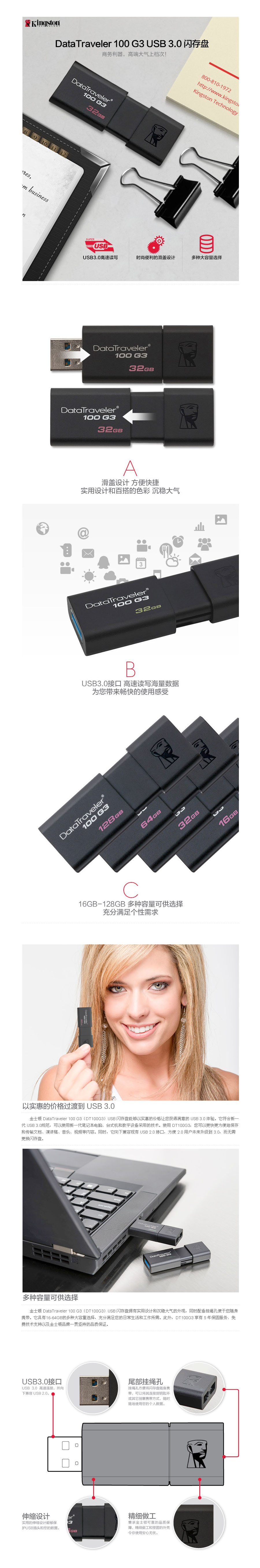 品名:金士顿(Kingston) U盘 DT 100G3 32GB USB3.0 黑色