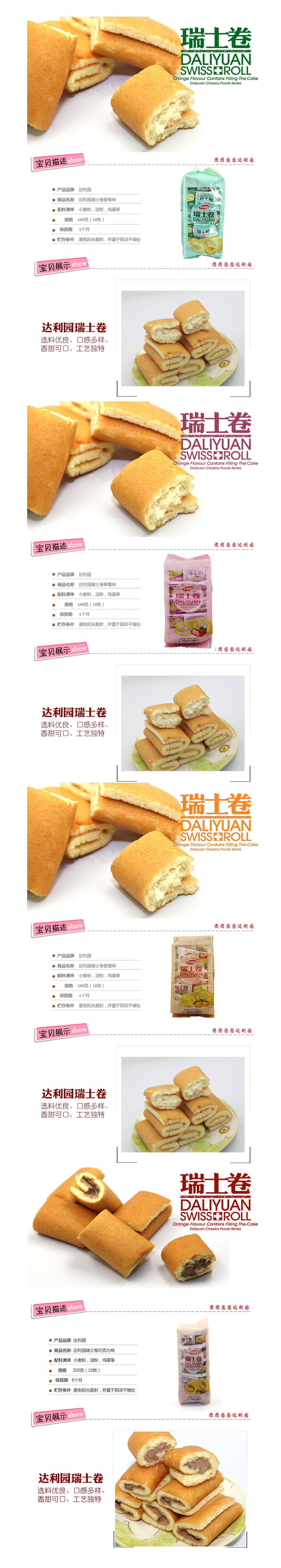 品名:达利园 瑞士卷 200g 草莓 香蕉 巧克力 橙汁 口味备注