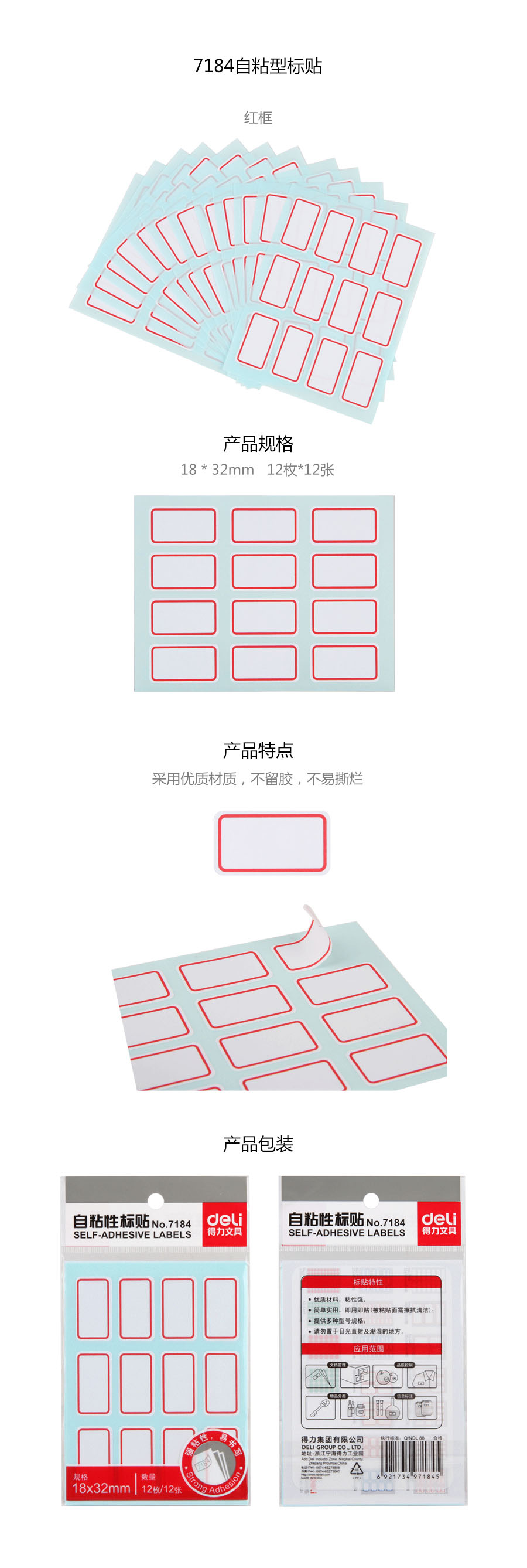 品名:得力(deli) 标签贴 7184 18*32mm 12张/袋