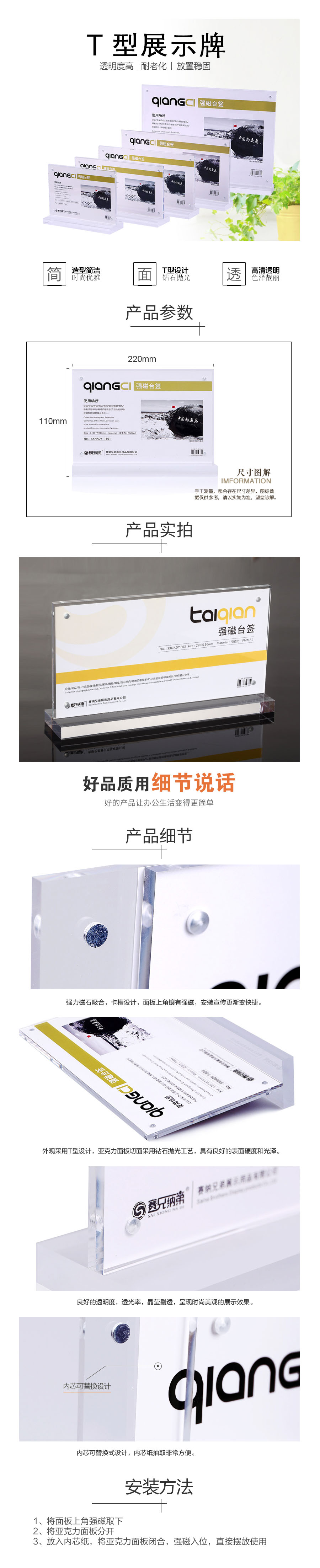 品名:赛兄纳弟 桌面展示牌 T-803 亚克力 强磁 11*22cm