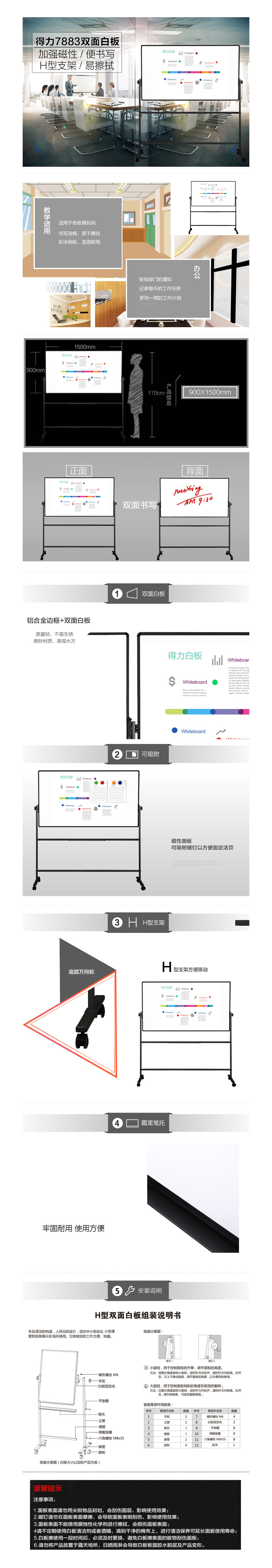 品名:得力(deli) 白板 7883 90*150cm H型带架 双面磁性