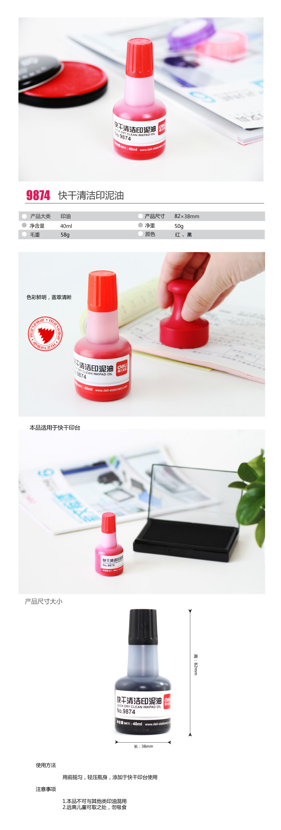 品名:得力(deli) 印泥油 9874 快干清洁 黑色